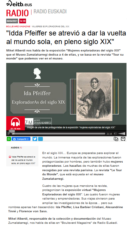 ZM. Exploradoras del siglo XIX. Entrevista a Mikel Alberdi en Radio Euskadi para el programa Boulevard Magazin. 6-04-2021