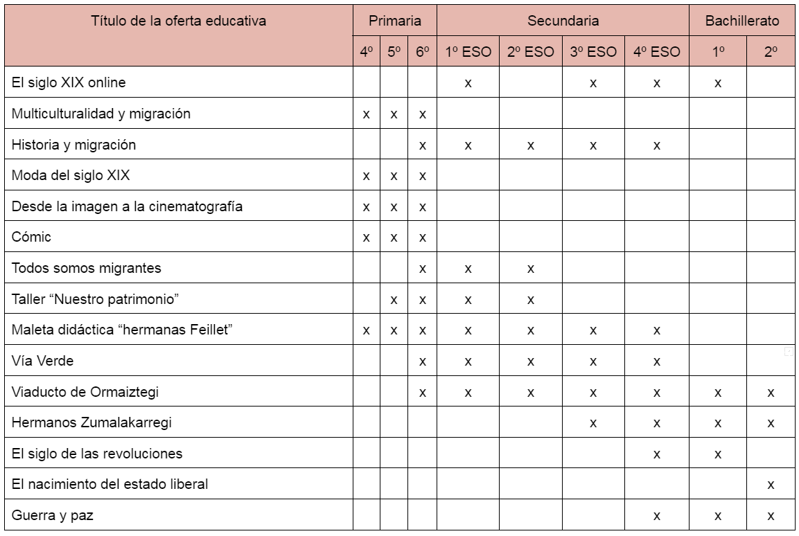Tabla propuesta educativa completa 2021-2022