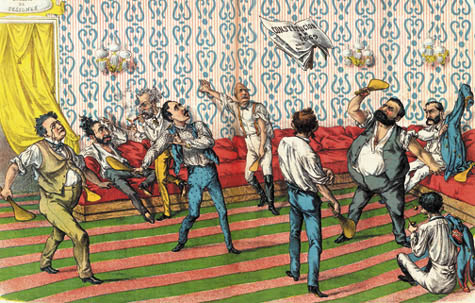 Una partida de pelota. La Carcajada nº 33. Barcelona, 1872.