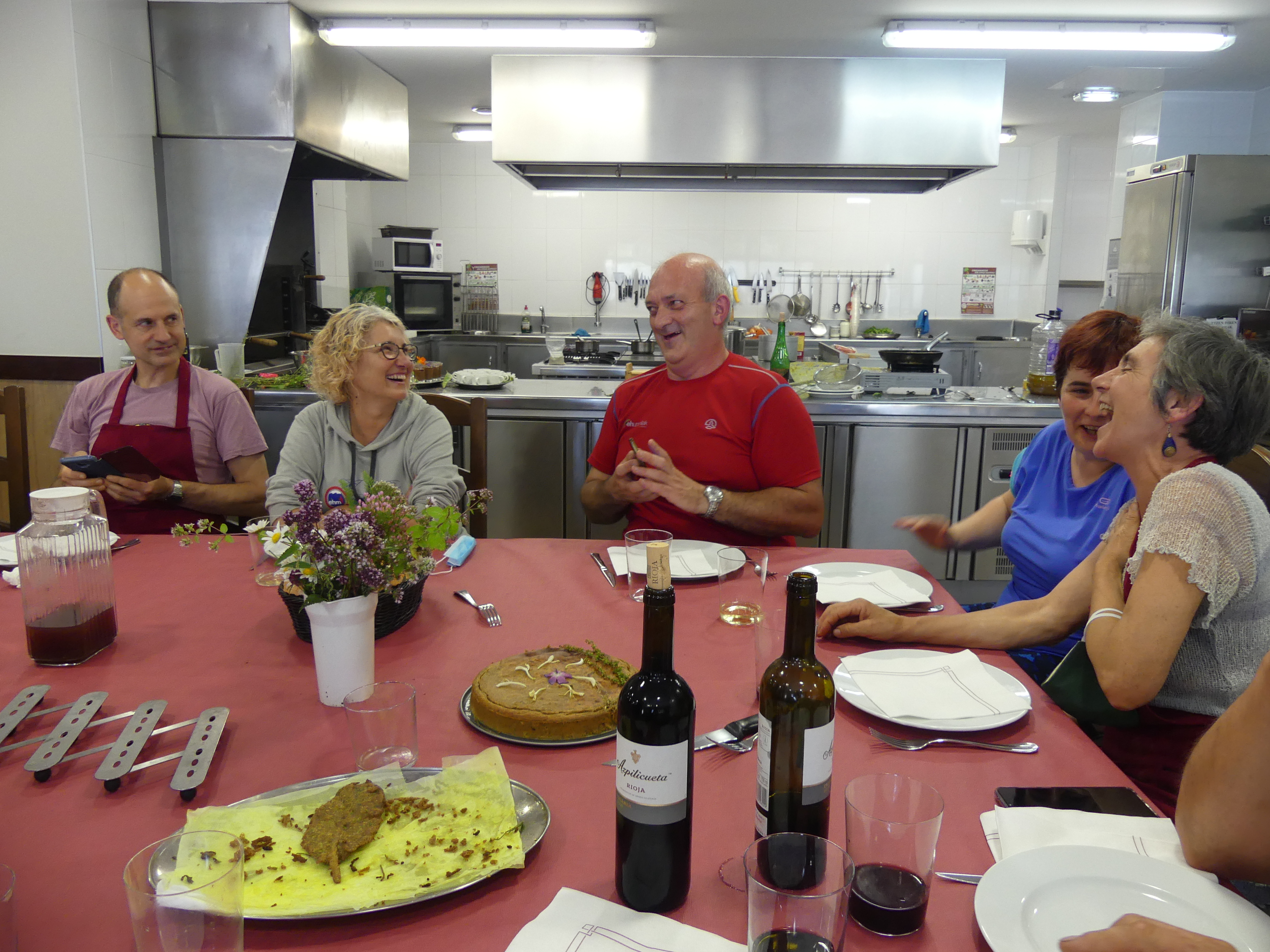 Mutiloko elkarteko sukaldera sartu eta Clara Gutierrezen azalpenak jarraituz sukaldean buru belarri hasi ginen lanean. Plater ugari eta bikainak prestatu ondoren, mahai atsegin baten inguruan dastatzeko aukera izan genuen.