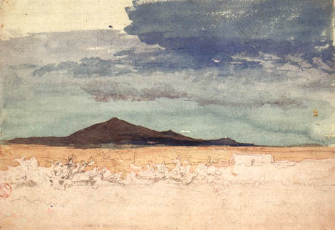 Mariano FORTUNY. Tetuango bataila koadrorako bertan hartutako paisaiaren apuntea. (MNAC)