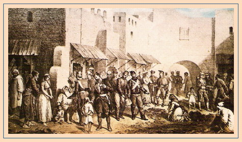 Afrikako gerra. Espainiar soldaduak Tetuango biztanleeekin harremanetan.