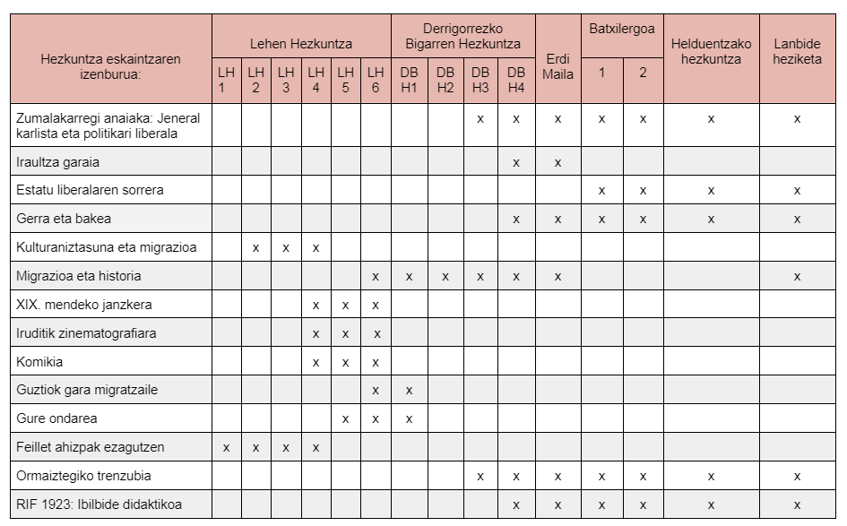 Taula eskaintza osoarekin