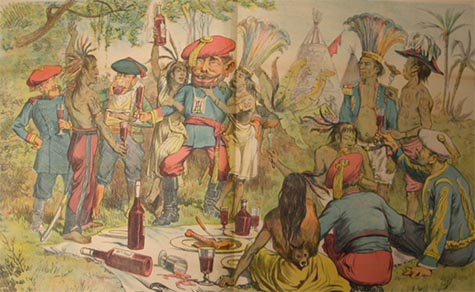 Los salvajes de América festejando a los salvajes de Europa. El Charlatán año II nº 27. Barcelona, 8-IX-1887 Hemeroteka Municipal de Madrid
