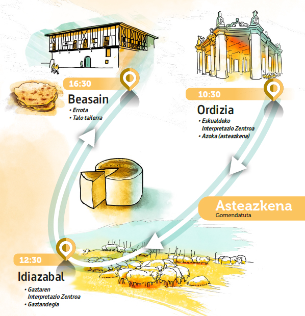 Eguneko ibilbideak taldeentzako Goierrin. Ibilbide gastronomikoa: Idiazabal Luzaldea